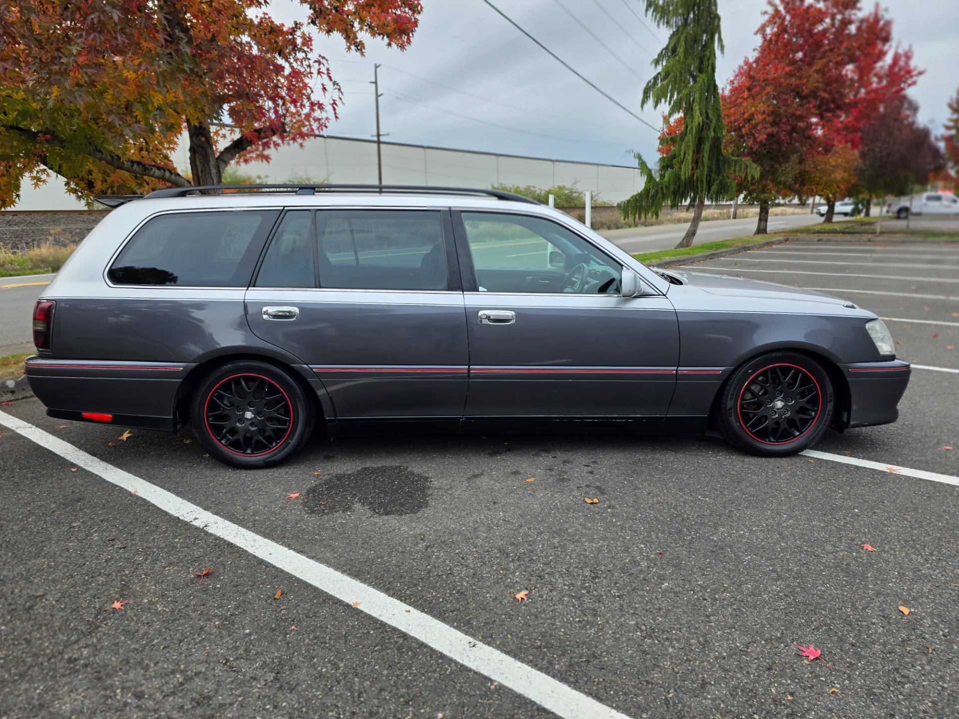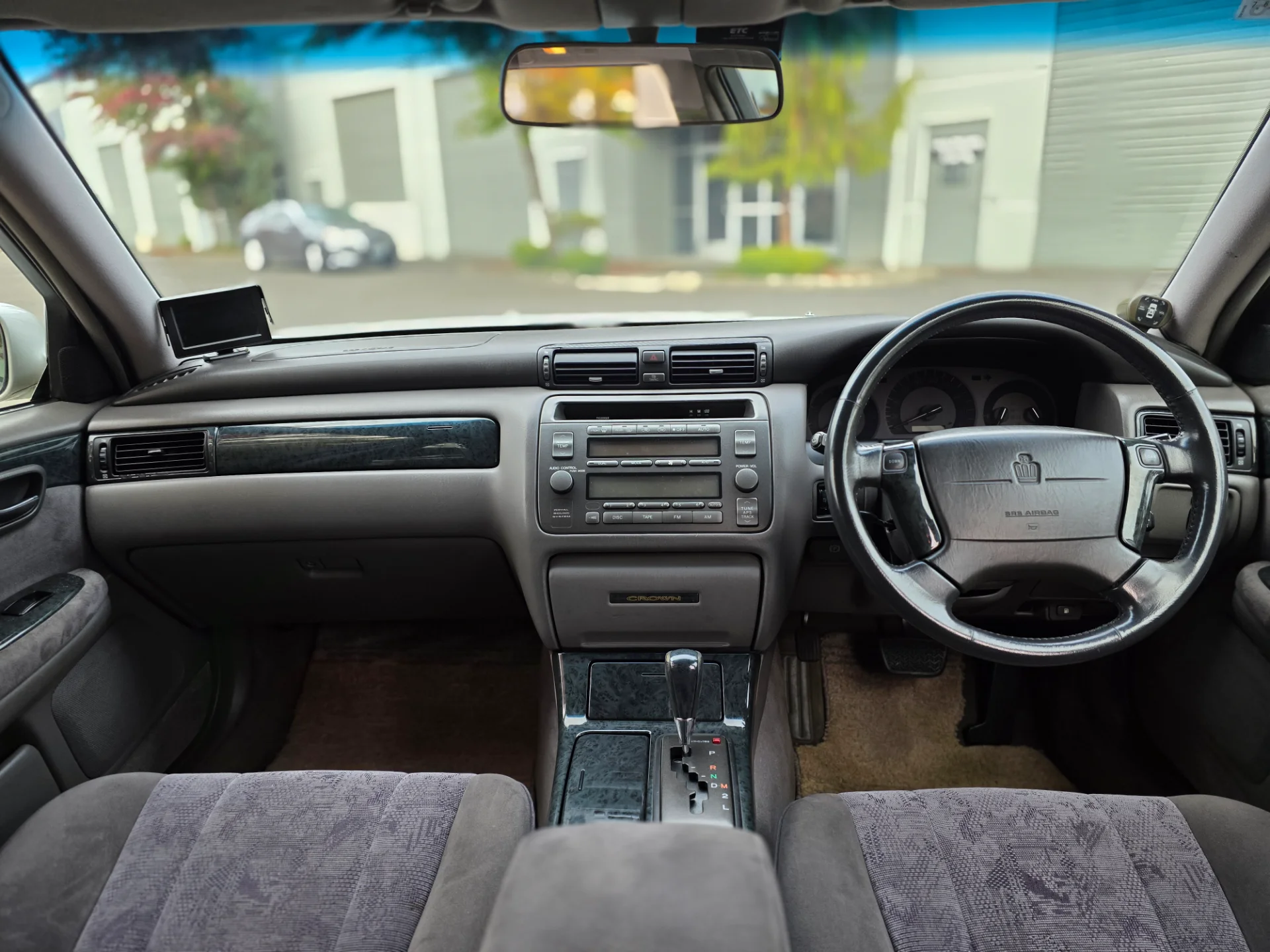 Showing 163,471 kilometers (101,576 miles), this right-hand-drive Crown Estate has been well maintained, including a timing belt service completed in Japan before import. The custom two-tone silver metallic paint highlights its long, sleek body lines, while the gray cloth interior remains clean, comfortable, and true to its luxury heritage.