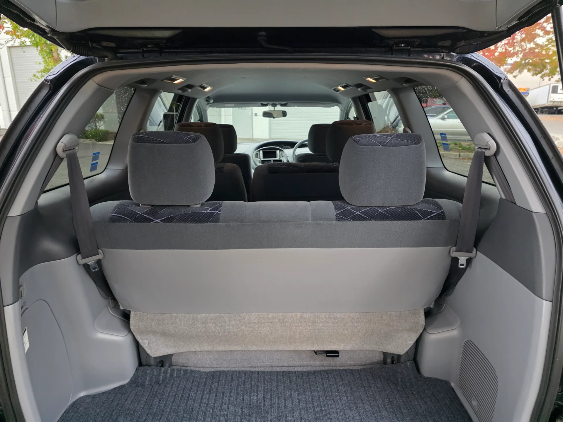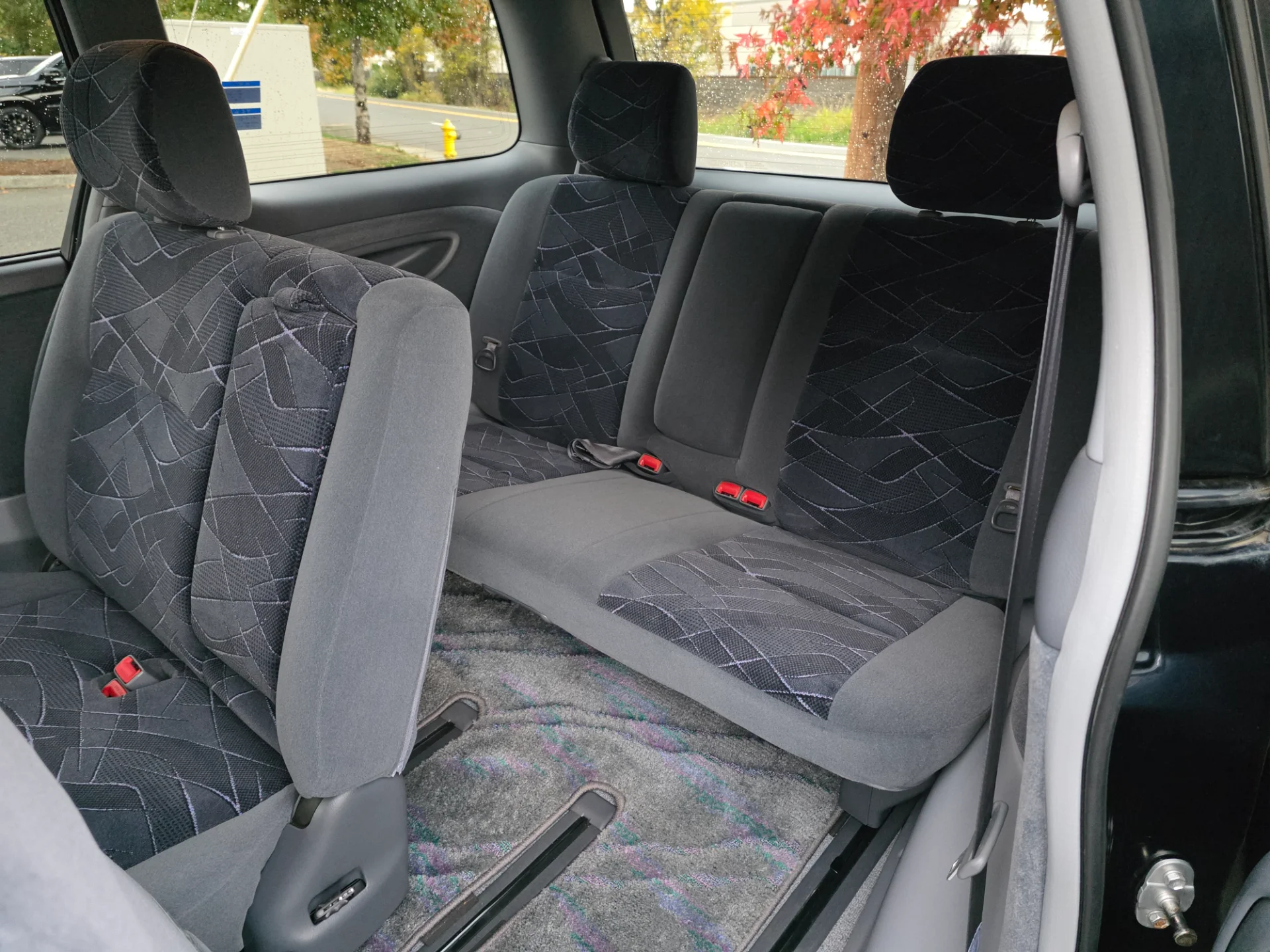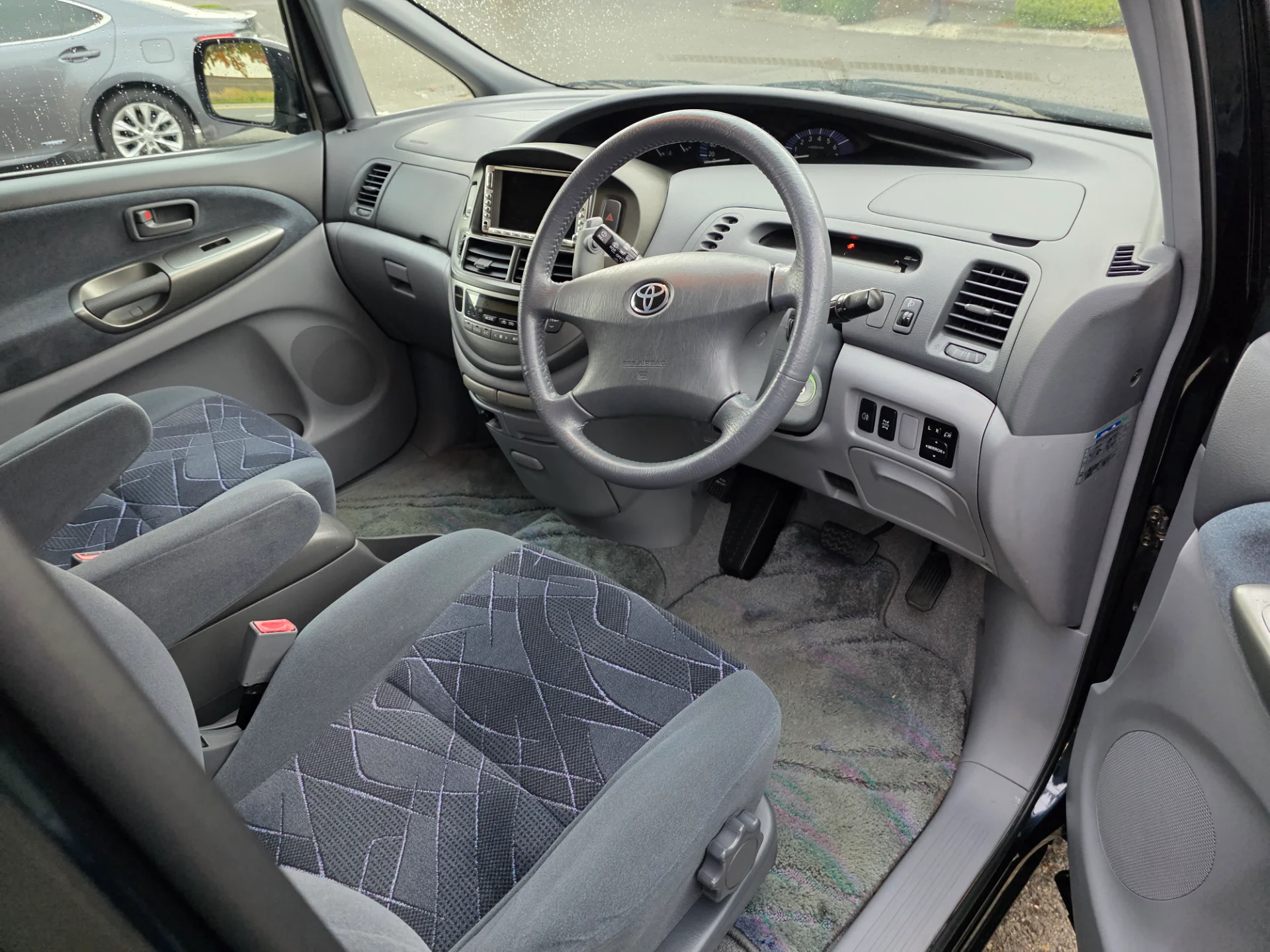 Interior: Dark gray cloth upholstery β clean and comfortable